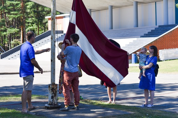 Latvijas valsts simtgades karoga viesošanās Salacgrīvas 3x3 saietā.